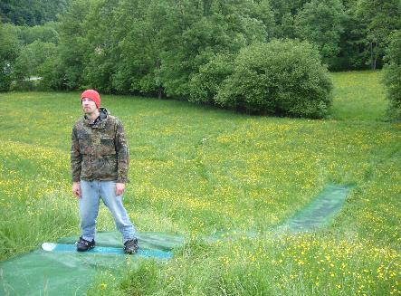 haben wir unsere Hirnzellen einmal arbeiten lassen..... 25m Kunstrasen, 1 Kicker und ne Flasche Spülmittel. Na ja und das Ergebnis seht ihr ja. Ach ja, für alle Greenpeace und Nabu Mitglieder: Wir verwenden ausschliesslich "OBERBIOKERNSEIFE" aus dem Reformhaus :-)